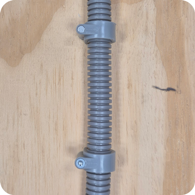 Voor plekken waar weinig ruimte is of waar trillingen door het slaan niet gewenst zijn, zoals in een meterkast, is er de flexbuis-schroefclip (art. Nr: 421282). Deze variant biedt extra flexibiliteit bij de installatie. De schroef is uitgevoerd met een T10 kop, waardoor hij eenvoudig te monteren en zo nodig ook weer te demonteren is.